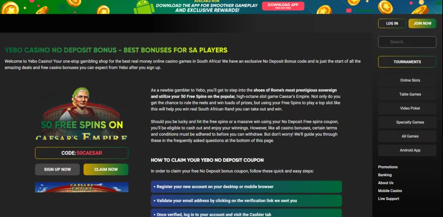 Yebo Casino and Springbok Casino are known for their regular free spins giveaways, making them perfect for players who enjoy consistent slot action.